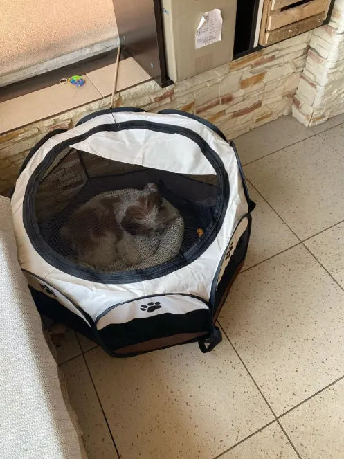 "Love this pet play pen! My cats are thrilled and I feel safe leaving them in it while I'm at work. The foldable design makes it super convenient to store, and its breathable mesh keeps my pets comfortable all day. Would recommend to any pet lover!"